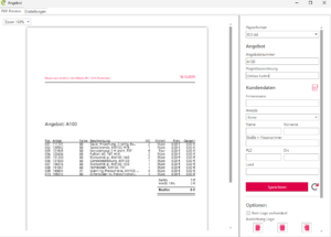 Für einen oder mehrere selektierte Schnitte können Sie über diese Funktion ein Angebot für Ihre Kunden erzeugen. Die Kundendaten können aus dem Plan als auch aus Outlook oder MS Exchange übernommen werden.