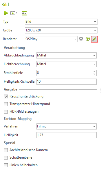 Um folgende Einstellungen zu treffen, klicken Sie auf den Stift neben den Renderern.