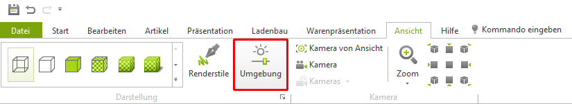 Mittels Umgebung lassen sich Hintergrund der Planung, sowie die globale Beleuchtung steuern.